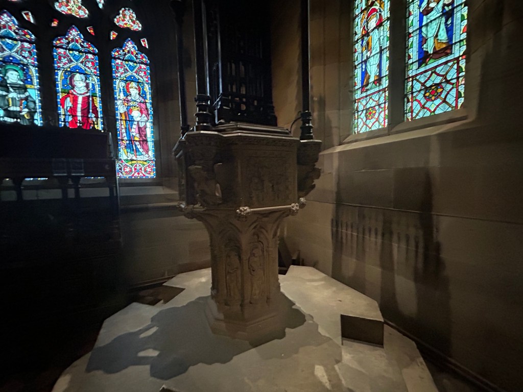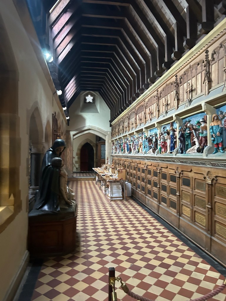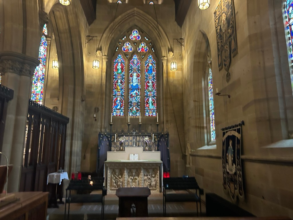 Pugin was one of the foremost champions of the Gothic Revival. He believed that medieval Gothic architecture represented the truest form of Christian design. St Augustine’s reflects this ideology through its Early English Gothic style. This style is characterised by pointed arches, lancet windows and steeply pitched roofs. (See my earlier post for an introduction to encaustic tiles.)