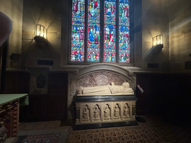 The building comprises a nave, chancel, transepts, and side chapels. The richly decorated interior was carefully designed. It reflects Pugin’s belief in architectural honesty. This is outlined in his influential work Contrasts. Every element serves a liturgical purpose. A square tower on the west front adds vertical emphasis without overwhelming the human scale of the church. Although a central tower and spire were planned, they were never completed. St Augustine’s forms part of a wider complex. This includes The Grange, Pugin’s family home. The adjacent monastery was later designed by his son, Edward Pugin. Augustus Pugin himself is buried within the church, beneath a simple stone tomb in the chantry chapel he designed.